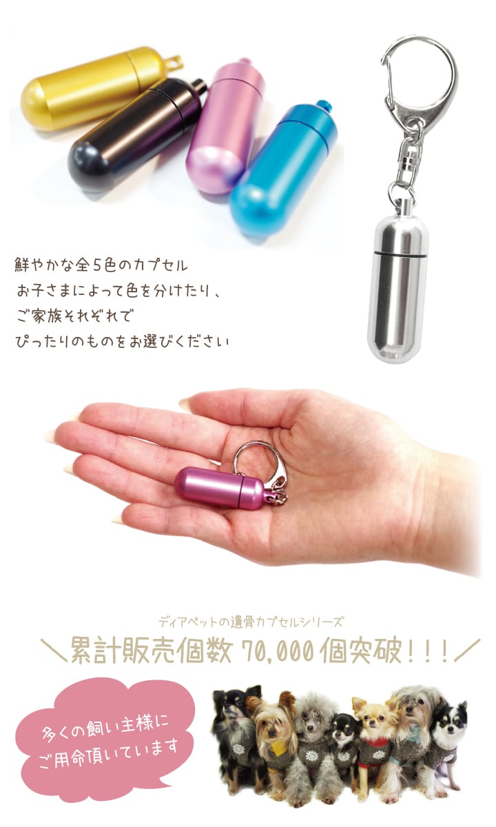 【ガラス管入り】遺骨カプセル Sサイズ キーホルダー(巾着なし)